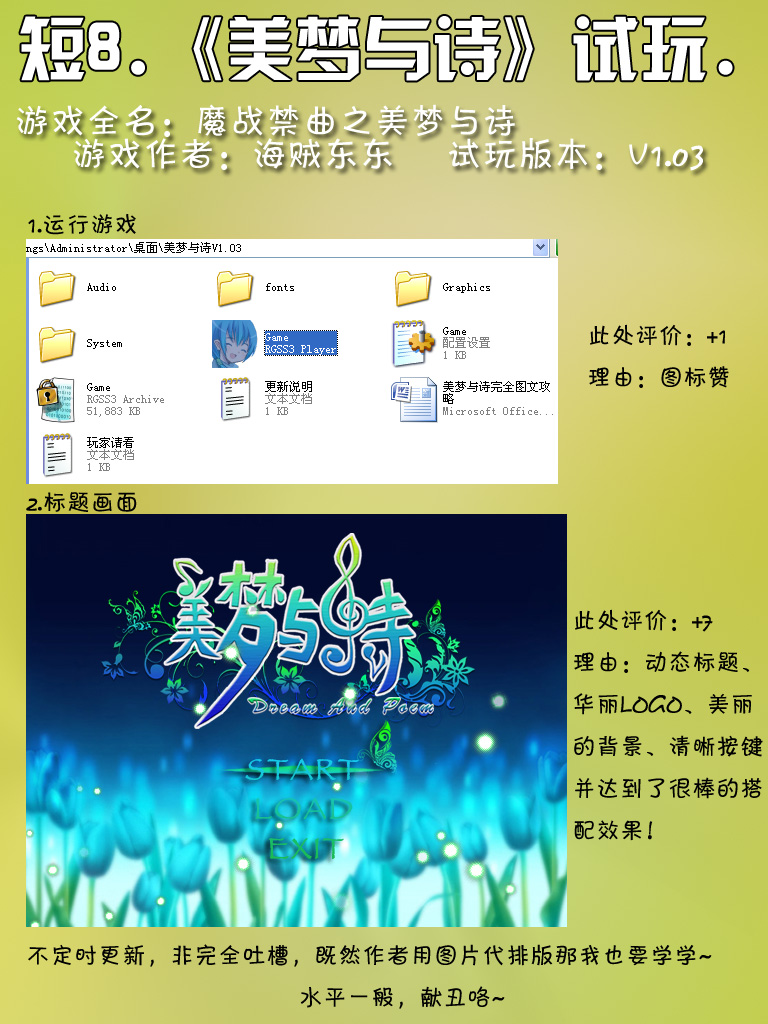 对了,我问了下其他人,几乎都没出现这问题,你看看V1.02版本会出现这个问题吗。存档是通用的。 你的内存是多大?用的什么系统?还有攻略打不开?会卡?? 如果遇到过不了的,看下实况吧:http://www.bilibili.tv/video/av665604/index_1.html 我看看出现问题的原因是什么,我好在下个版本修正,总之,谢谢你的建议~ |